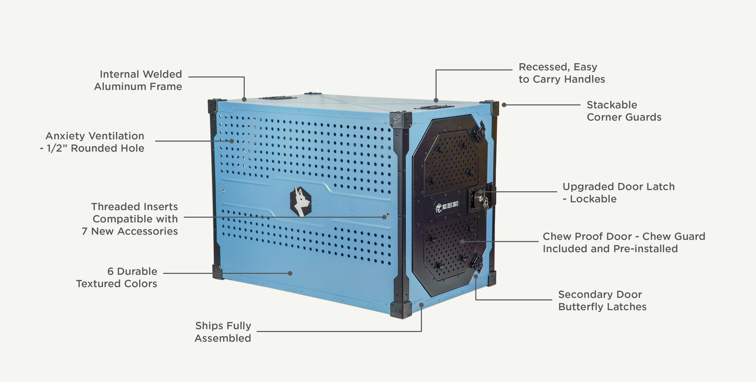 Yes, Rock Creek Crates are engineered to hold up to the strongest dogs and outlast other dog crates. Rock Creek Crates are built with an internal welded aluminum frame. This frame acts as a rugged backbone for your crate adding unparalleled strength, structural integrity, and safety. All external features connect directly into the frame giving your crate extra support where needed most. For high anxiety, escape artists, or large/high-drive dogs we highly recommend adding a door guardto your crate.